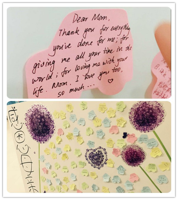 活动从播放感恩母亲节的微电影开始,接着同学唱了歌颂母亲的歌曲,一首《烛光里的妈妈》使活动现场的气氛达到了高潮。随后主持人提问同学们关于是否了解自己母亲的问题,同学们都热情高涨,积极参与。最后,学生代表何金隆进行发言,教师代表国帅老师对此次活动进行总结性发言:每个人要了解体会母亲的辛劳,培养感恩的心,做一个感恩的人。在活动最后,主持人提议让同学们在便利贴上抒发对母亲的感激之情,把一些平时没有表达的感谢妈妈的话大胆表达出来并张贴在宣传板上。本次活动画上圆满的句号。
