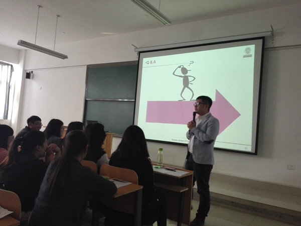 必维公司人事部门经理黄帅进行了精彩演讲,黄经理播放了企业宣传片,向同学们介绍了企业的历史以及业务范围,同时介绍了企业的2016招聘政策,以及相关待遇,同时回答了学生们关心的相关问题,会后对报名的30多名同学进行了面试。