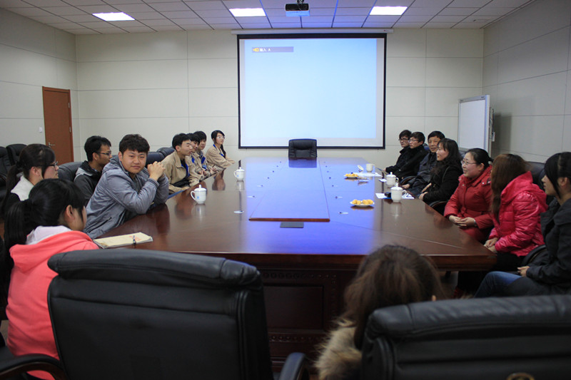 在山东恒汇电子科技有限公司,系走访教师与企业副总经理张若琏进行了交流,并与顶岗实习的学生进行了座谈,了解我系学生在企业的顶岗实习情况及企业对学院人才培养的意见和建议。