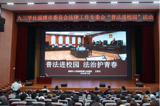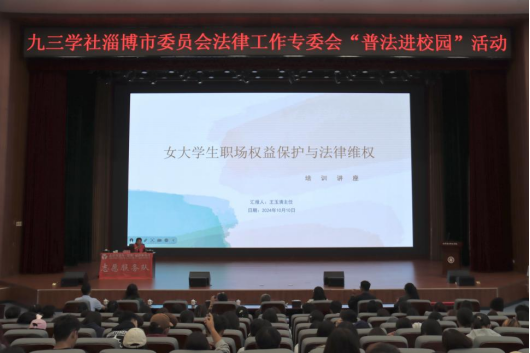 本站讯(通讯员 王海婷)为进一步落实学校关于依法治校工作部署要求,有效增强师生法律意识和安全防范意识。10月10日,我校健康管理系开展“普法进校园”活动。本次讲座特邀淄博市人民检察院第七检察部副主任、四级高级检察官王翠玉,北京市盈科(淄博)律师事务所监事会主任王玉清作为主讲嘉宾,学校党委委员、党委宣传部部长夏文燕,淄博市教育局思政科科长张新明出席活动。健康管理系党总支书记刘扬主持活动,健康管理系师生代表400余人参加活动。