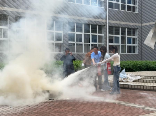 模拟教学楼二层突发火情场景,组织师生开展应急疏散演练,2分钟内完成全员安全撤离。专业人员现场演示“提、拔、握、压”灭火器四步操作法,指导师生实操干粉灭火器扑灭初起火灾,有效提升了自身的应急处置能力。
