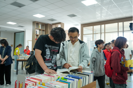 启动仪式后,参会人员一同来到图书馆一楼“你选书,我买单”线下好书荐购、图书集市广场等活动现场。