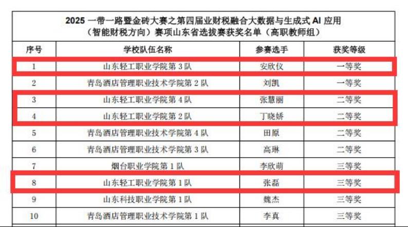 学校在2025一带一路暨金砖大赛之第四届业财税融合大数据与生成式AI应用(智能财税方向)赛项山东省选拔赛中获佳绩