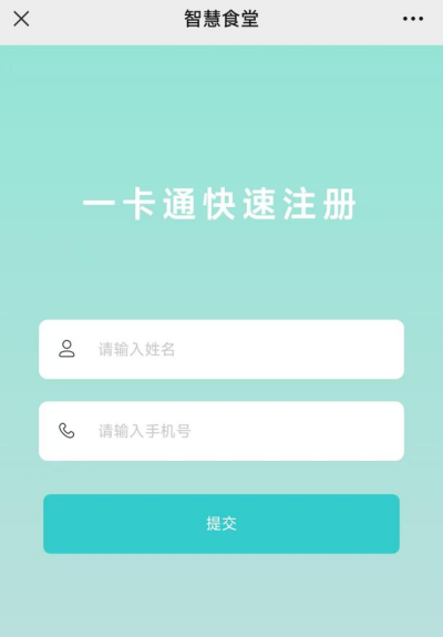 第二步:一卡通用户快速注册,在打开的页面(下方图)中,输入姓名和手机号码,进行一卡通账号的快速注册。