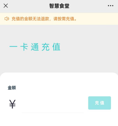 (4)第四步:在金额处输入要充值的金额,充值的金额无法退款,请按需充值。如预计消费金额为20元,则充值20元。输入金额后,点击“充值”按钮,系统会链接至微信支付,按微信支付流程完成支付后自动跳转到二维码页面。